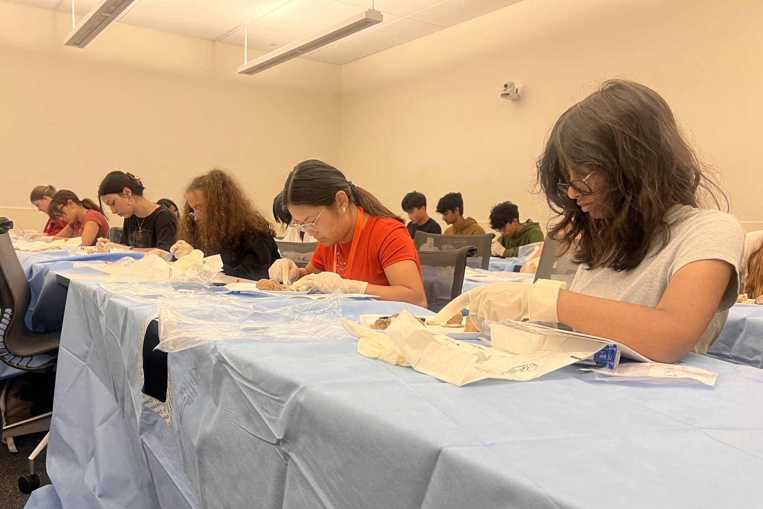 Students practice basic surgical skills using training models, learn proper suturing techniques, and participate in medical simulation exercises that introduce surgical decision-making and teamwork.